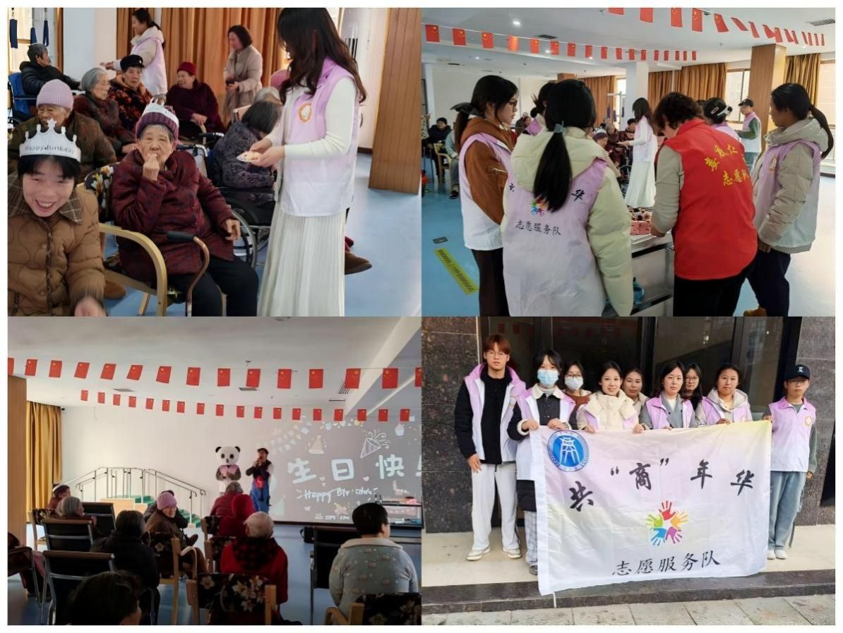 12月30日下午,商学院共“商”年华志愿服务队的志愿者们前往健乐仁爱医养院,开展了一场温馨欢乐的生日祝福主题活动,为院内的老人们带去真挚的问候与温暖的陪伴。