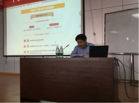 周发明副校长从开展“两学一做”活动的重大意义、准确把握“讲政治、有信念”的基本内涵和要求党员如何“讲政治、有信念”, 强调“讲政治、有信念”刻在骨子里扎根头脑中等方面进行了精彩的阐述。