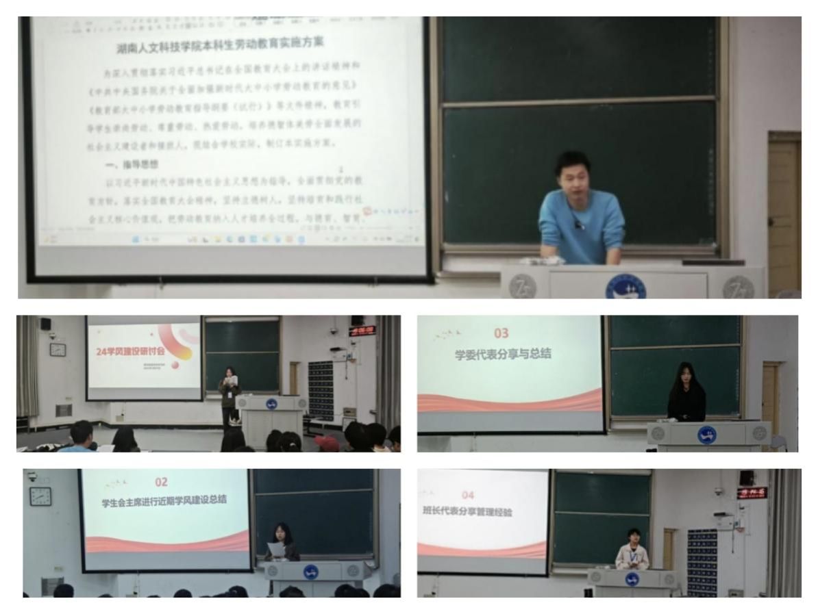 首先学习部对近期学院学风督察情况进行了总结,通过具体案例,直观展现了当前学院学风的整体态势。随后是班长和学习委员代表依次上台,结合班级实际情况,围绕激发学生学习兴趣、培养学生良好学习习惯等主题,提出设立奖惩措施、举办多样化读书主题活动等建议。最后谢迎峰对《beat365正版唯一官网必一本科生劳动教育实施方案》进行了详细解读,强调学生干部要以身作则,发挥模范引领作用,带动全体同学共同投身学风建设。