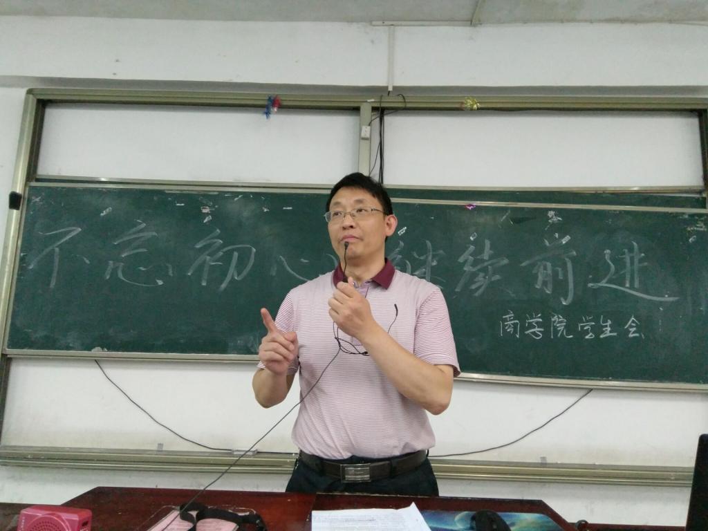 党总支书记刘辛田作总结发言,他指出学生会是沟通学生和老师的桥梁,至关重要。他希望全体学生干部不忘初心,始终坚持为广大同学服务的宗旨,在服务同学的同时实现自身的价值。