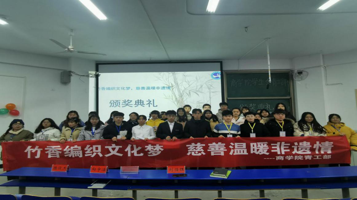 中华传统文化是劳动人民的智慧结晶,为弘扬与传承中华传统文化、让敬爱劳动人民的思想深入人心,商学院青工部开展以“竹香编织文化梦,慈善温暖非遗情”为主题的公益活动。参与此次公益活动的全体成员都饱含热情,积极主动。此次颁奖典礼便是在现场为表现优秀的志愿者们颁奖。