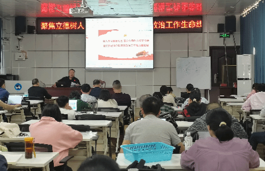 1031午,商学院在高韵楼101召开思想政治工作大会,大会的主题是“聚焦立德树人根本任务,筑牢思想政治工作生命线,切实推动新时代商学院思想政治工作高质量发展”。商学院全体教职员工参加了大会,党总支书记刘辉主持