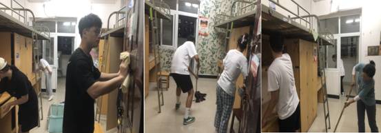 志愿者认真筹划、分工明确、密切配合,对宿舍地板、洗漱台、桌椅、衣柜、用具进行清尘、扫灰、除污、去渍,不放过任何一个卫生死角,对损坏的开关、水龙头、灯管等设备一一上报维修。通过志愿服务队员们的共同努力,新生宿舍面貌焕然一新。