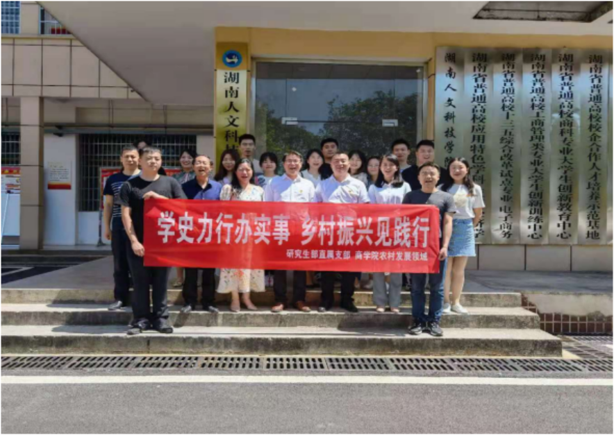 会上组织师生认真学习了国家乡村振兴重要文件,鼓励师生带着问题深入乡村一线调研,按照“用心学党史,用情办实事”的要求,把论文写在祖国的大地上;充分利用好农村发展领域专业实践的特点和优势,帮助农民群众解决“急难愁盼”问题,在融入国家乡村振兴战略的伟大实践中,做好学校农村发展领域研究生的培养工作随后师生深入娄底市乡村调研乡村振兴建设情况。