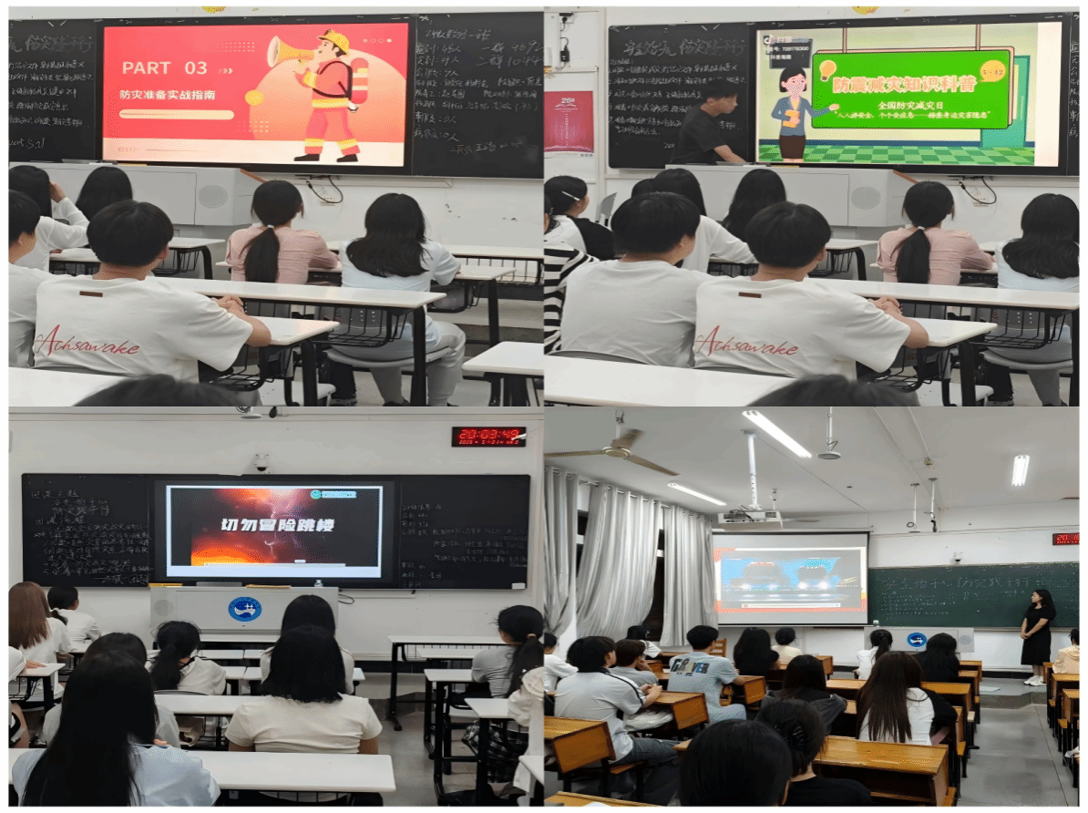 团课期间,同学们阅读并观看了《全国防灾减灾日介绍》《自然灾害的危害性》《面对自然灾害,正确自救是关键》、防灾减灾》《常见自然灾害和自救知识》等文件和视频,了解了常见灾害危害、风险识别方法、应急避险技能、应急预案流程及灾后防护要点。主持人还带领同学们共同学习如何在危险中快速识别风险、科学避险逃生,以及灾后自救互救的关键技能。