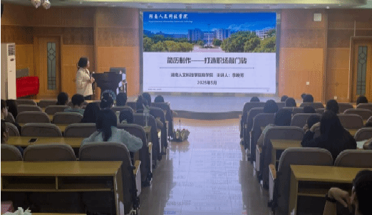 5月21日晚,由招生就业处、教务处、团委主办,商学院承办的beat365正版唯一官网必一首届“职”击未来模拟求职大赛的复赛赛前培训在养根楼报告厅成功举办。本次培训特邀就业指导专家李晚芳老师作《简历制作——打造职场敲门砖》专题辅导,为参赛学子带来了一场干货满满的职场必修课。