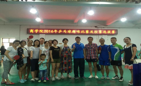 2016年9月24日上午九点,商学院分工会在教工之家乒乓球馆举行了趣味乒乓球比赛及校赛选拔赛活动。本次活动由龙雨老师主持,商学院全体教职工参加。首先,刘辛田书记对此次活动致辞,并且宣布活动开始。接下来,龙雨老师将在场教师分成龙队与虎队,分别由龙雨老师和胡赓老师领队,并且介绍了此次活动的流程与规则。第一个环节是趣味比赛,第一个小游戏是“乒乓传递”;两队以颠球绕台接力的形式进行比赛,游戏中队员们互相鼓励,气氛热烈。第二个小游戏是“投掷乒乓”;队员分别向三米远处的盆中投掷乒乓球,在规定时间内,投入的球数量多者胜出,乒乒乓乓的球声,伴随着两队此起彼伏的加油声,将活动送入了高潮。第三个小游戏是“残奥会体验赛”,在效仿残奥会的乒乓球双打赛制中,老师们在欢乐中体验残疾人的顽强,让大家更加珍惜健康与美好的生活。第二个环节是校赛选拔赛,老师们各显身手,奋力拼搏,争取为学院的荣誉贡献自己的一份力量。活动的第三个环节,龙雨老师与体育学院杨鑫老师进行了一场友谊赛,两位老师的精湛球艺,为大家奉献了一场精彩绝伦的表演。商学院此次工会活动为教职工提供了一个促进友谊,实现良好沟通的平台。老师们在比赛中发扬风格,互助互爱,增进了彼此的了解,提高了商学院教职工的凝聚力。