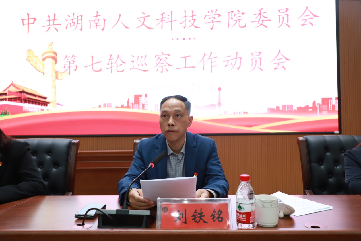 刘铁铭结合学校前六轮巡察和省委巡视中发现的问题,对第七轮巡察工作提出具体要求,并对巡察组和被巡察党委全体成员分别提出纪律要求。他指出,校内巡察工作是严肃政治生活,净化政治生态,推进全面从严治党向基层延伸,促进学校各项事业高质量发展的重要抓手。要精准落实政治巡察要求,坚定不移深化政治巡察;准确把握巡察定位,切实履行政治巡察职责;坚决落实政治责任,圆满完成巡察任务。