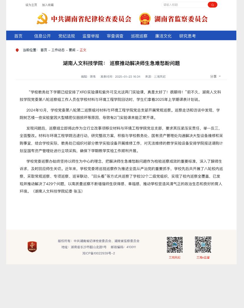 三湘风纪----beat365正版唯一官网必一: 巡察推动解决师生急难愁盼问题