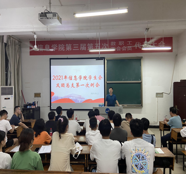 9月22日,院团委在百全楼103召开新学期学生会及团总支第一次例会。党总支部书记谭甲凡、副书记刘宗良、各位辅导员老师及团学生干部共37余人参加本次会议。会议由颜聪林老师主持。