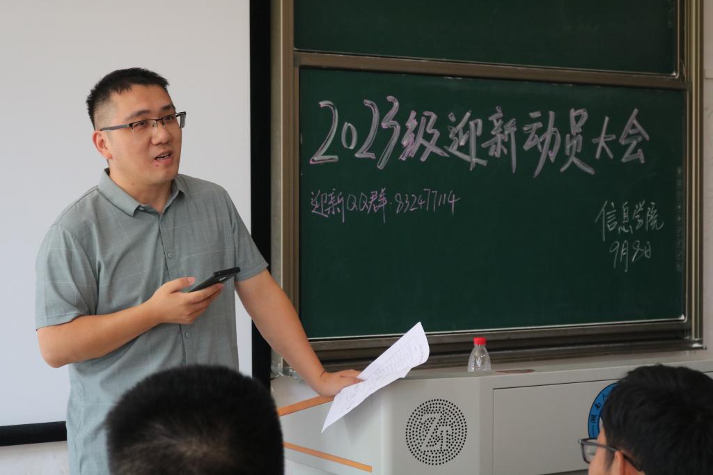 为更好的进行迎新工作,信息学院于9月8日中午在百全楼103召开2023级迎新动员大会。