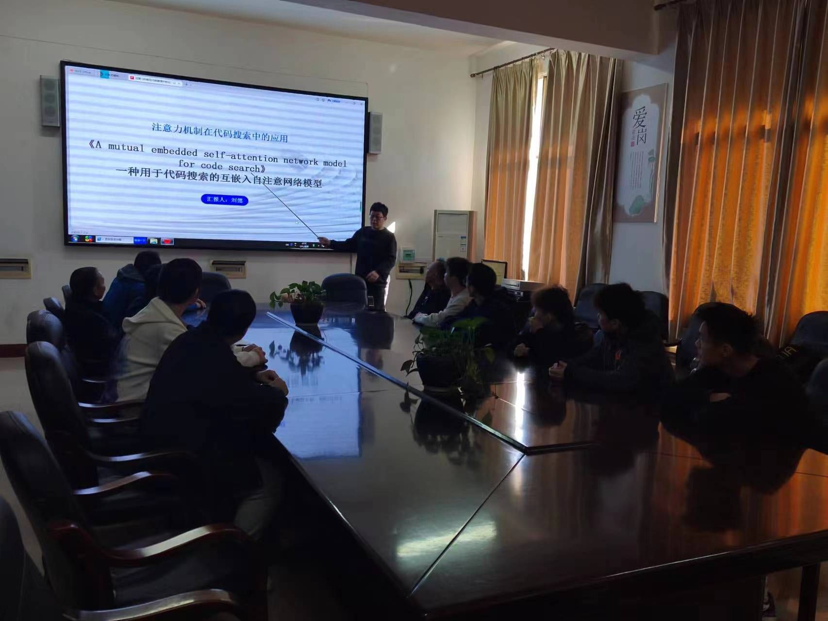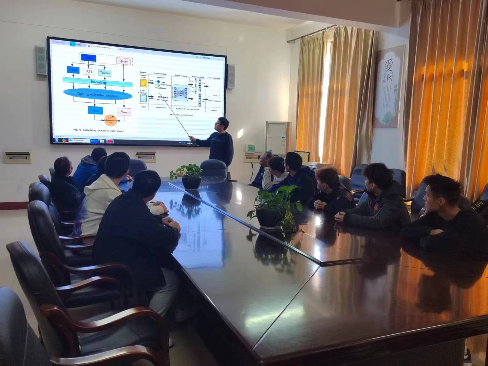 近年来,注意力机制以其强大的信息提取能力,成为自然语言处理领域的一大然点。本次报告中,刘懿博士介绍了注意力机制和深度神经网络的发展及应用情况,并以Google 的 Transformer系列模型为例,详细介绍了注意力机制的特征。通过注意力机制和深度神经网络模型可以对庞大的代码库进行搜索,发挥注意力机制和深度神经网络模型代码特征提取的优势。注意力机制和深度神经网络模型的深度结合必将为代码分析提供更为全面、可靠、可控的处理方法。会后,刘懿博士与部分师生进行了深入交流,共同探讨如何将注意力机制和神经网络与各自的研究方向相融合,促进科研成果产出。