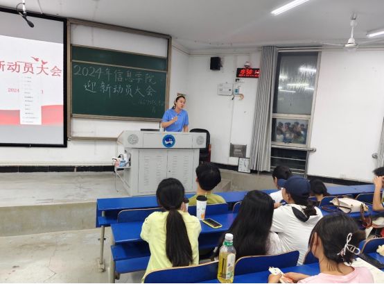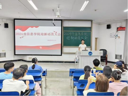 为了给2024级新生营造一个温馨、有序、和谐的入学环境,确保迎新工作的顺利进行,信息学院于9月11日19点30分在致远楼201教室召开了信息学院2024级迎新动员大会。