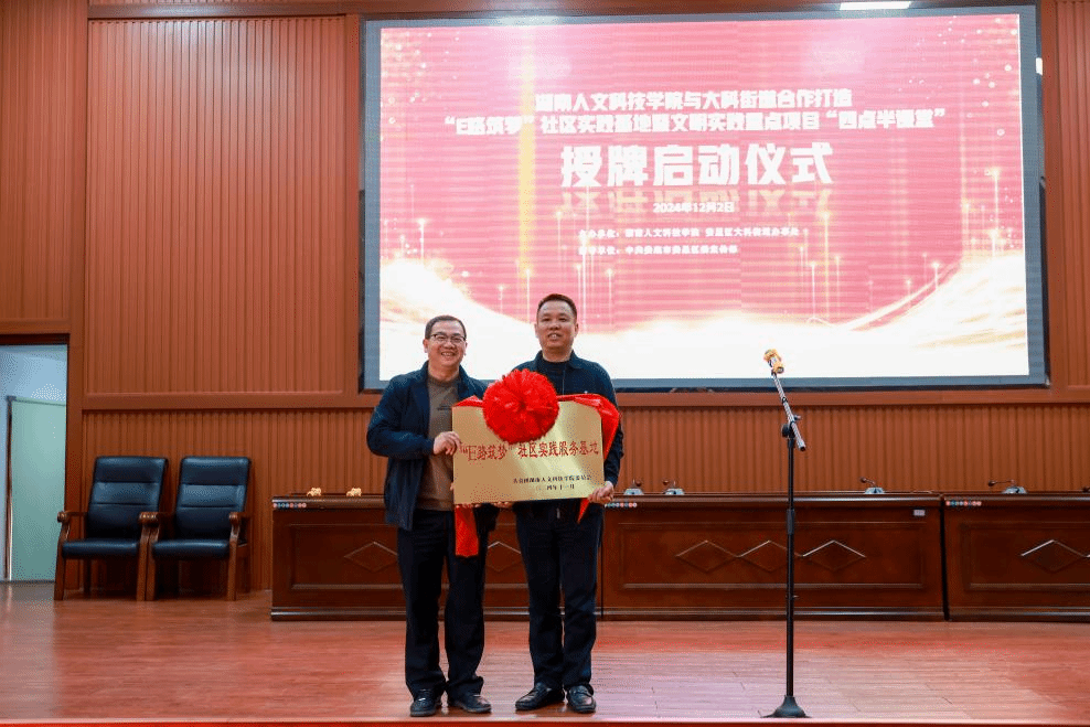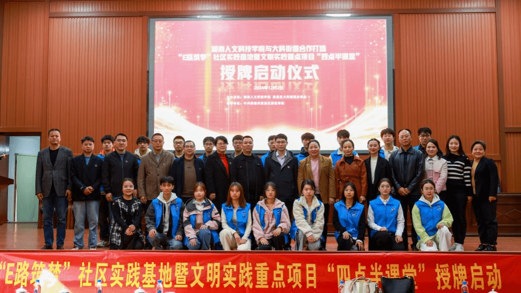 12月2日,beat365正版唯一官网必一与大科街道合作打造的“E路筑梦”社区实践基地暨文明实践重点项目“四点半课堂”开班启动授牌仪式在大科街道礼堂隆重举行。beat365正版唯一官网必一党委委员、副校长谭峰亮,娄星区委常委、宣传部长曾海军等领导出席授牌仪式。