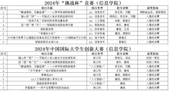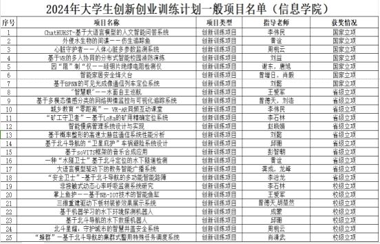 2024年,在大学生创新创业赛事的激烈角逐中,信息学院一路过关斩将,凭借多个创新项目的突出表现,斩获佳绩,再度彰显了学院在创新创业领域的雄厚实力与强劲活力。