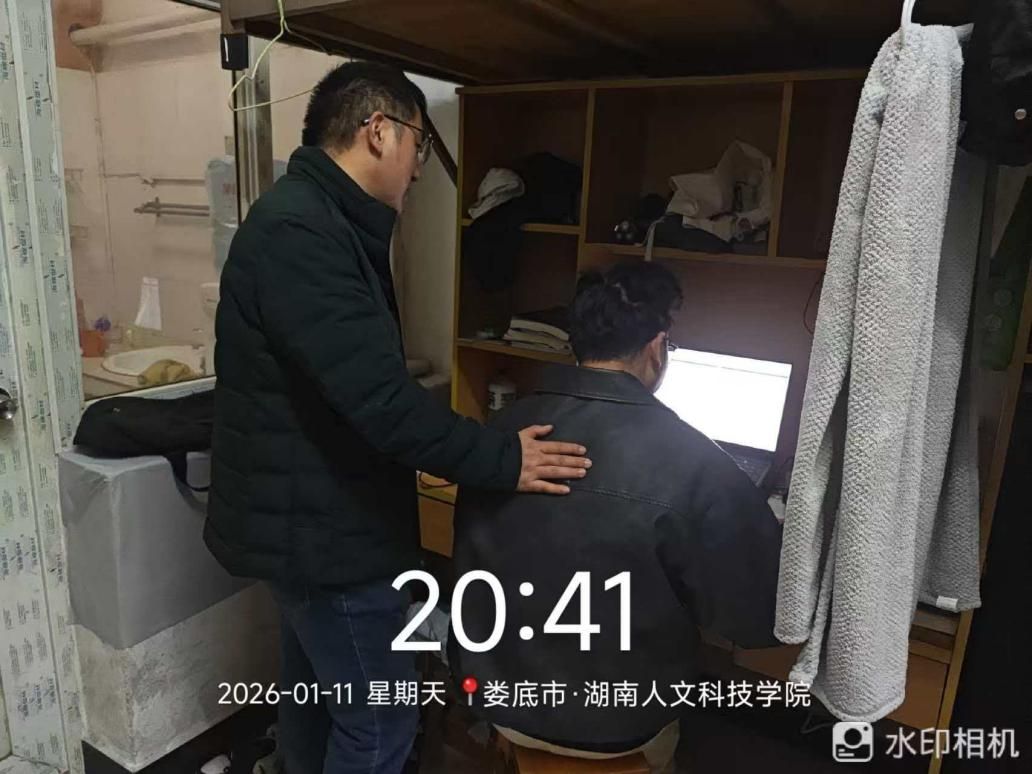 2026年1月11日晚,学院领导班子,全体班主任及辅导员共同参与,深入学生寝室开展宿舍安全排查与考前教育工作。
