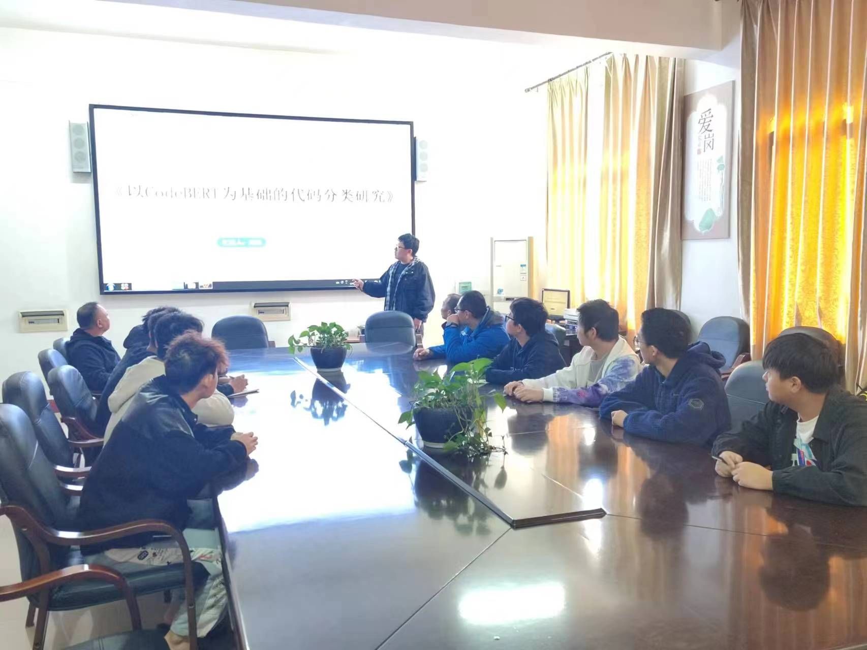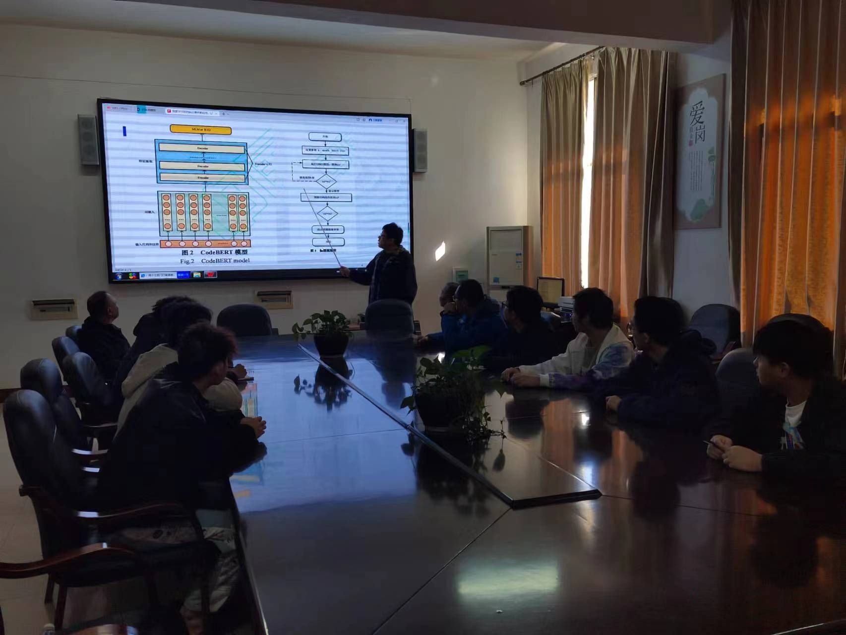 近年来,大语言模型以其强大的自然语言处理能力,成为代码分类领域的一大然点。本次报告中,刘懿博士介绍了深度神经网络和大语言模型的发展及应用情况,并以Google 的 BERT 系列模型为例,详细介绍了大语言模型的特征。通过预训练和大语言模型可以对庞大的代码库分类,发挥大语言模型的语义理解能力的优势,同时也发挥基于知识图谱的问答系统的知识精确性和答素可解释性的优势。大语言模型和预训练的深度结合必将为代码分析提供更为全面、可靠、可控的处理方法。会后,刘懿博士与部分师生进行了深入交流,共同探讨如何将神经网络与各自的研究方向相融合,促进科研成果产出。