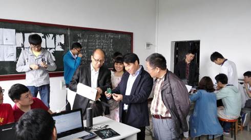 周发明副校长在听取了我院领导关于校企合作教育实施方案的介绍汇报后分别来到了百全楼、养根楼工程实训活动现场与参加校企合作教育的企业负责人进行了深入交流,着重了解企业进校项目的具体内容;详细询问了学生项目完成情况、收获情况;随后参观了我院电子创新实验室及电子元件库。