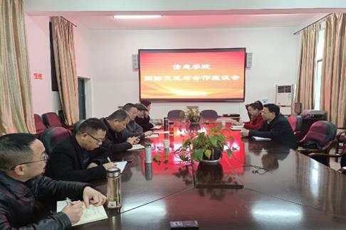 2月24日上午,信息学院在百全楼211召开国际合作与交流调研座谈会,副校长陈志国出席会议,国际合作与交流中心主任黄敏陪同调研。学院领导、教研室主任参加会议。