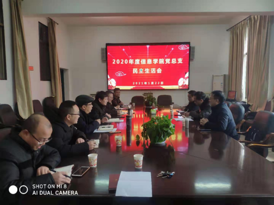 2021年1月22日,信息学院党总支在百全楼211召开2020年度领导班子民主生活会,信息学院党政班子成员、总支委员参加会议,刘铁铭校长、校党政办王建主任到会指导。信息学院党总支书记谭甲凡主持会议。