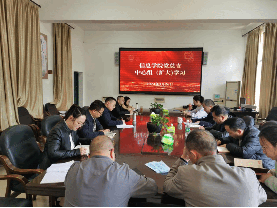 3月26日下午,信息学院党总支组织理论学习中心组在百全楼211开展政治学习,党总支委员、院领导班子及内设党支部书记参与了学习,党总支书记成运主持。