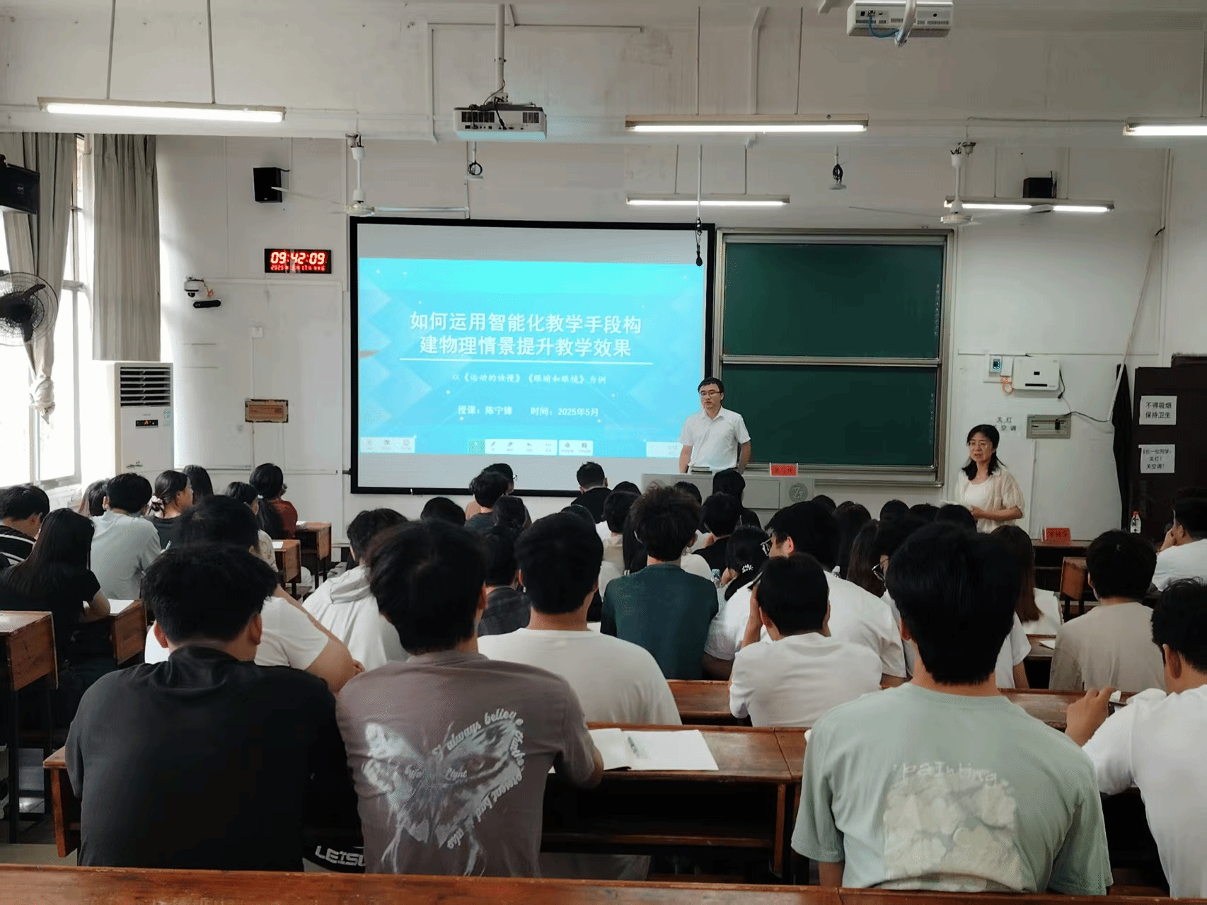2025年5月17日,娄底市第一中学附属星星中学徐晚云老师、陈宁锋老师及娄底市第一中学曾桂芬老师应邀到信息学院,为物理学专业2023级学生做系列辅导报告,本次讲座由唐淑红教授主持,讲座主要围绕中学物理教学设计、智能化教学等主题开展。