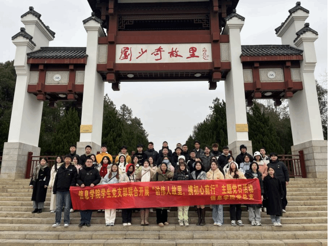 为进一步深入开展学习贯彻习近平新时代中国特色社会主义思想主题教育,2023年12月17日,信息学院党总支组织各内设学生党支部本年度新发展的党员赴韶山毛泽东故居、花明楼刘少奇故居联合开展“访伟人故里,携初心前行”主题党日活动。