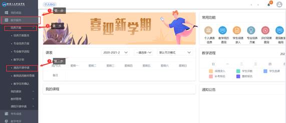 1.申报程序请参看《教师公共选修课网上申报步骤》(详见附件)。申请者在网上认真填写申报表后打印交各学院审核。