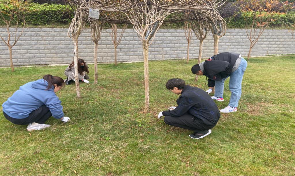 同学们耐心打扫,枯叶满地的小道渐渐恢复了原本美丽的面孔,道路的缝隙也在同学们细心的打扫下变得干净起来。提前完成任务同学也继续留下来帮助其他未完成的同学,深深体现我系学子不怕累、不怕苦,同心协力的精神。