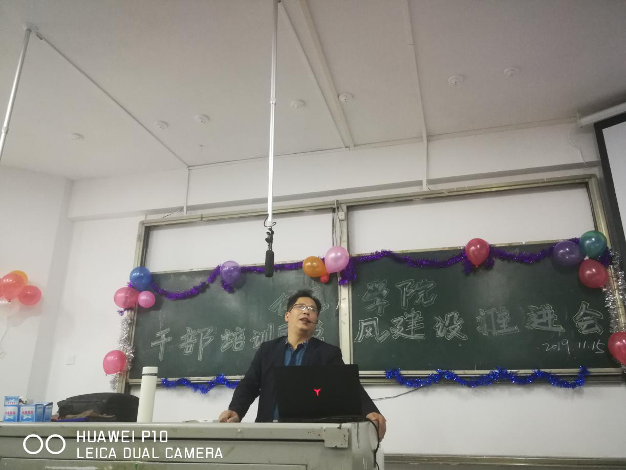 (图为干部培训会议上信息学院党总支谭甲凡书记对学生工作进行指示)