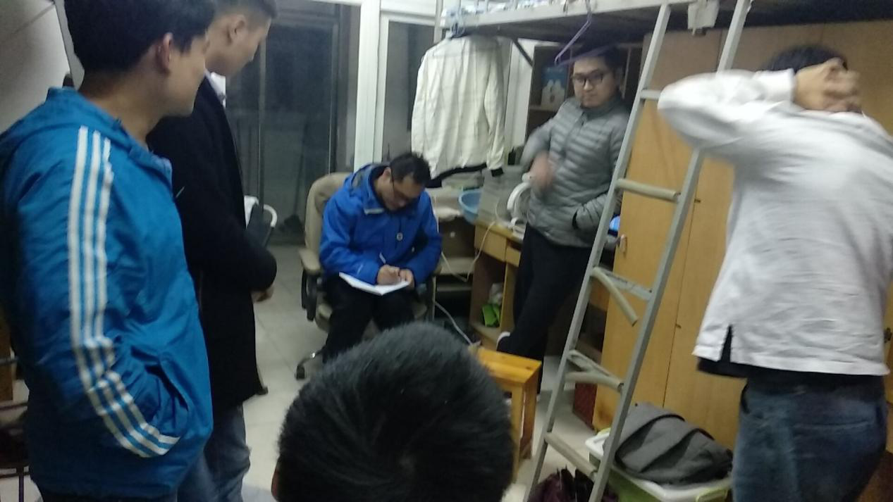 (图为学院辅导员集体下寝室宣传迎评知识,检查寝室内务情况)