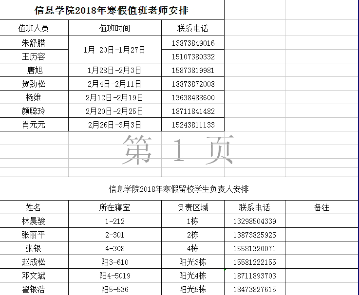 信息学院2018年寒假值班老师安排