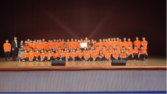 2019年6月2日晚19:00许,由信息学院18级的75名学生组成的合唱团站上了体育馆的舞台,统一的橙红色衣服就如岭上开遍的映山红,附和柔美的歌声,伴着动听的钢琴伴奏将“映山红”唱的深情而动听。