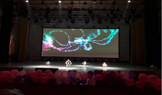 在乐队精彩的开场表演后晚会正式拉开了序幕,走出舒适圈跟着信息学院18级各班的班助们一起像一颗海草,海草海草随风飘摇,将现场气氛首先带向高潮。机器人协会带来的《机器人舞蹈》更是增添了本次晚会的新意,作为新一代应用型机器人,体内蕴含着众多高科技能模仿人类的骨骼关节,完成各种类型肢体动作,而且灵活度与稳定性表现十分出色。更引人注目的是由信息学院学生会干事表演的默剧《诊室风波》将观众引领进一个诙谐幽默的世界,凭借着以无声胜有声的效果再次将现场推向高潮。此外,还在节目间隙穿插了抽奖环节,现场幸运的四位观众怀着激动的心情从舞台上领走了丰厚奖品。晚上九点许,历时两个半小时的晚会在同学们意犹未尽的喝彩声中完美落幕。