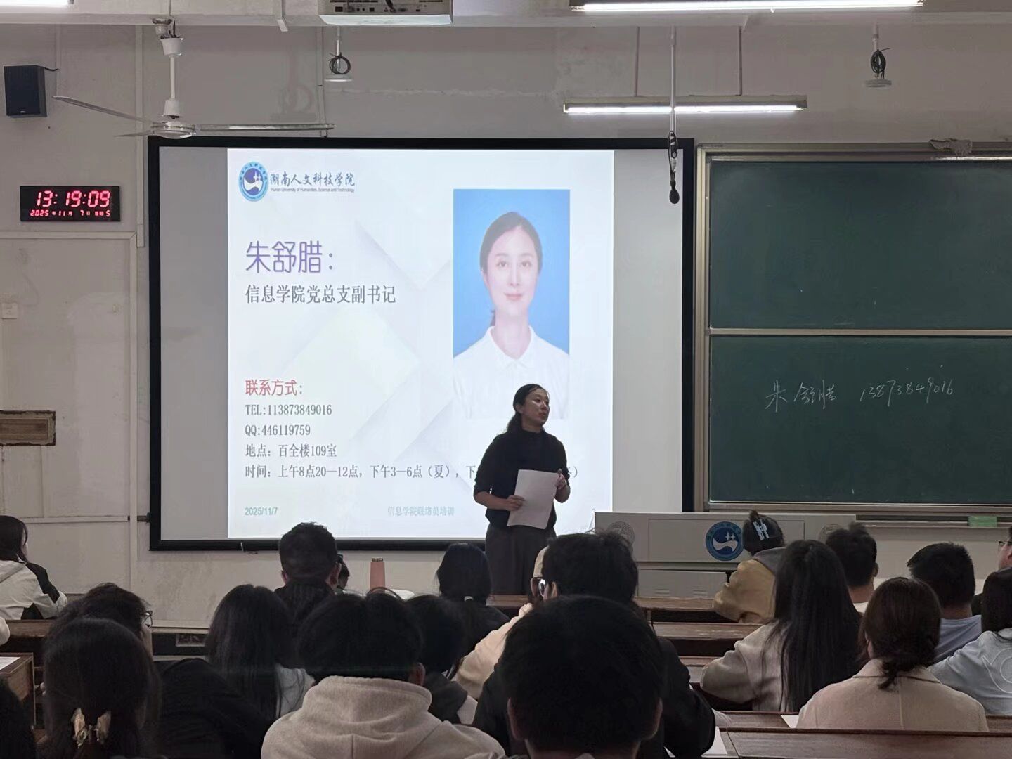 2025年11月7日,信息学院在百全楼103开展信息联络员专题培训,院党总支副书记朱舒腊、心理专干辅导员付妙主讲。各班级心理委员,文建委员参会。