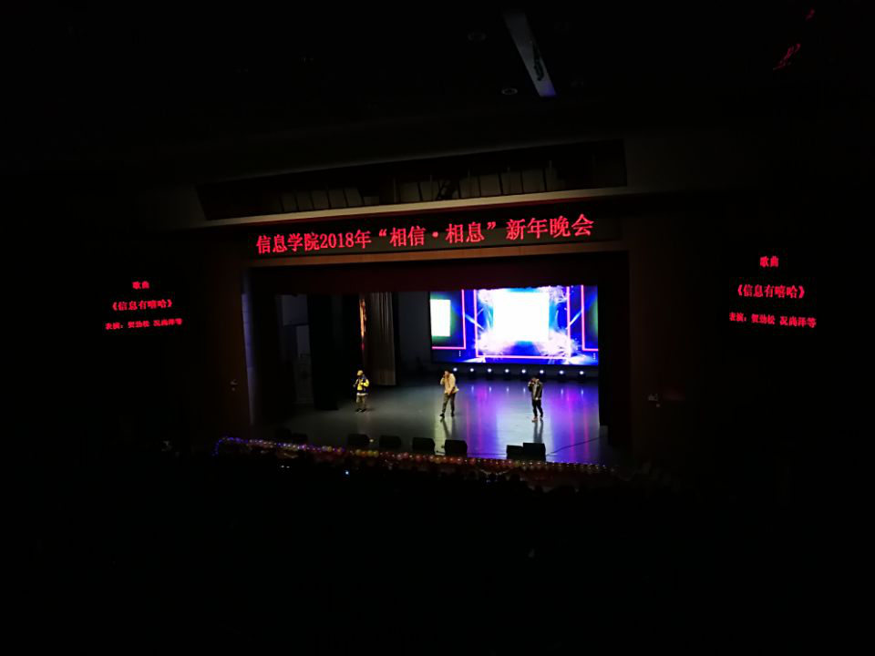 整场晚会传统与现代、古典与流行、高雅与通俗相互交融,节目精彩纷呈、高潮迭起,会场气氛活跃、热烈,洋溢着和谐、团结、积极向上的青春气息,全方位展现了信息学院师生优秀的艺术素质、昂扬向上的精神风貌。
