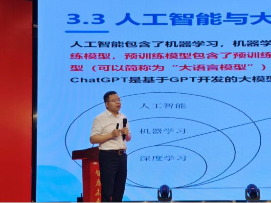 2025年4月16日晚上,信息学院彭智朝教授应邀到蓝思科技浏阳总部做蓝思大讲堂第十二期特邀报告《人工智能技术与DeepSeek大模型》,系统介绍了人工智能发展历程、人工智能基本概念和主要技术原理、大模型技术发展现状与最新进展、国内外大模型产品以及Deepseek大模型应用,蓝思科技中层骨干近千人参加本次讲座。报告以生动的案例切入机器学习、神经网络到大语言模型,梳理人工智能与大模型技术的发展脉络,并结合Deepseek大模型,重点介绍如何高效利用大模型处理用户不同的任务需求。在问答环节中,针对学员提出的如何利用Deepseek优化生产流程等问题,教授深入浅出进行专业解答,既有效消除学员疑惑,为技术应用指明方向,现场气氛热烈非凡。问卷调研显示在场学员对报告内容深度与形式创新表示高度认可,认为受益匪浅,给予了高度评价。