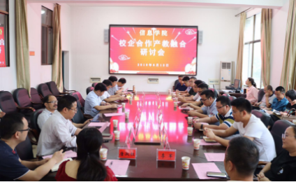 6月12日下午3点-6点,信息学院校企合作产教融合研讨会在百全楼211会议室召开,学校党委委员、副校长周发明、教务处处长羊四清、校地校企合作处处长黎建辉、信息学院党政领导班子、教研室主任、校地校企合作办老师及十家企业代表等参加了本次研讨。