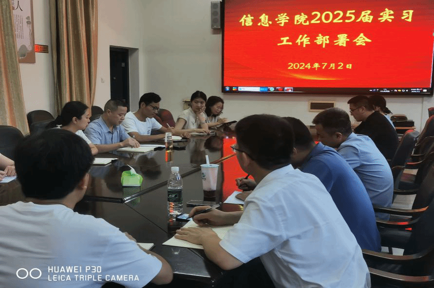 7月2日晚上,信息学院在百全楼211会议室召开了2025届学生实习工作部署会议。副书记朱舒腊、副院长曾志峰、各专业教研室主任及2021级班主任参会。曾志峰主持会议。