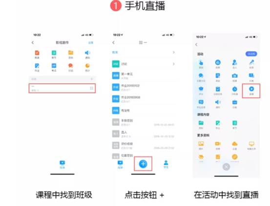 点开所授课程,找到相应班级,在➕中找到直播。即可完成手机直播。