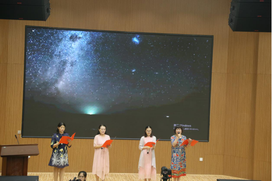 9月29日晚,beat365“不忘合作初心跟党走”统一战线庆祝新中国成立70周年诗歌朗诵会在匠成楼报告厅举行。九三beat365正版唯一官网必一委员会、民盟beat365正版唯一官网必一支部、农工民主党beat365正版唯一官网必一支部、beat365正版唯一官网必一归侨侨眷联合会、beat365正版唯一官网必一知识分子联谊会等统一战线成员欢聚一堂,以诗歌朗诵的形式表达对祖国的热爱和祝福。党委书记郭军,党委副书记刘铁铭,九三学社第十四届中央委员会委员、副校长石潇纯,党委委员、宣传统战部部长谢柳出席朗诵会。