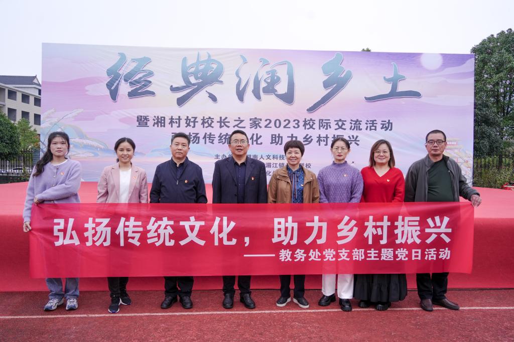 为深入贯彻习近平总书记关于教育的重要论述和关于语言文字工作的重要指示精神,落实教育部、国家乡村振兴局、国家语委印发的《国家通用语言文字普及提升工程和推普助力乡村振兴计划实施方案》,加大民族地区、农村地区国家通用语言文字推广力度,服务铸牢中华民族共同体意识,助力乡村振兴战略实施,10月27日,教务处党支部在涟源市湄江镇长春联校开展“弘扬传统文化,助力乡村振兴”主题党日活动,副校长刘铁峰应邀出席活动,教务处全体支委成员及部分党员参加。