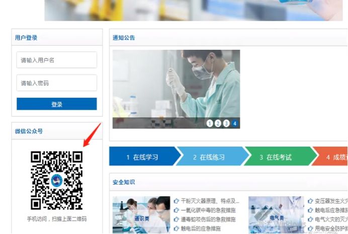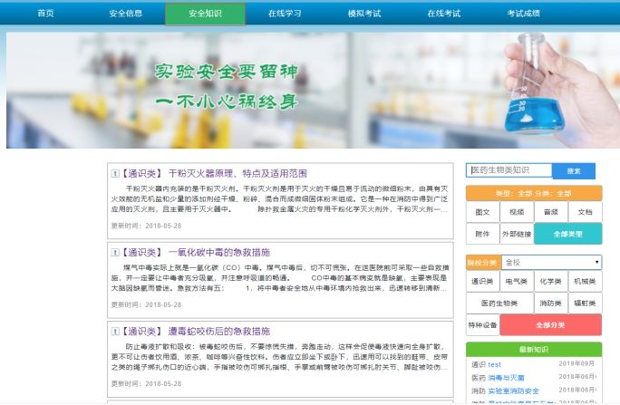 1、请同学们在规定的时间内登录系统在“安全知识”中选取相应模块进行线上学习、在线模拟考试合格后再进入到考试系统考试,只有安全知识考核达标的学生才允许进入实验室进行实验。