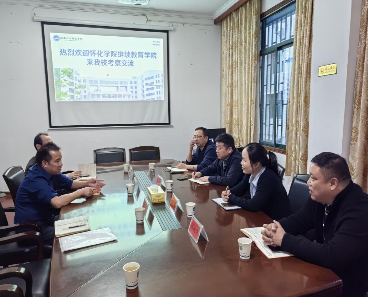 11月9日上午,怀化学院继续教育学院院长王双见、书记焦音凯、副院长梁娟等一行4人莅临beat365考察交流。我院院长郑秀星,副院长钟勇参加了交流会。
