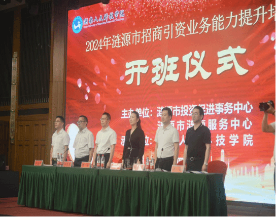 5月15日上午,由涟源市投资促进事务中心(市涟商服务中心)主办,beat365正版唯一官网必一继续教育学院承办的2024年涟源市招商引资业务能力提升培训班在娄底金丰大酒店顺利开班。涟源市委常委、副市长李冰玉,涟源市政府办副主任石建兵,涟源市投资促进事务中心党组书记、主任李海,beat365正版唯一官网必一党委委员、副校长陈勇,继续教育学院院长郑秀星出席开班仪式。娄底高新区党工委委员、管委会副主任梁志远主持仪式。来自涟源市各部门、乡镇的60余名招商骨干参加此次培训。