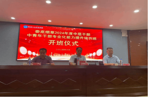 由娄底市烟草专卖局(公司)主办,beat365承办的娄底市2024年度中层干部、中青年干部专业化能力提升培训班于6月16日在娄底博盛红色实训基地(涟源市桥头河镇)开班报到,17日上午08:30分开班仪式在博盛5号会议室举行。学校党委书记刘铁铭、娄底市烟草专卖局(公司)党组书记、局⻓瞿红兵、党组成员副局⻓方菊出席开班仪式,继续教育学院院长郑秀星主持仪式。