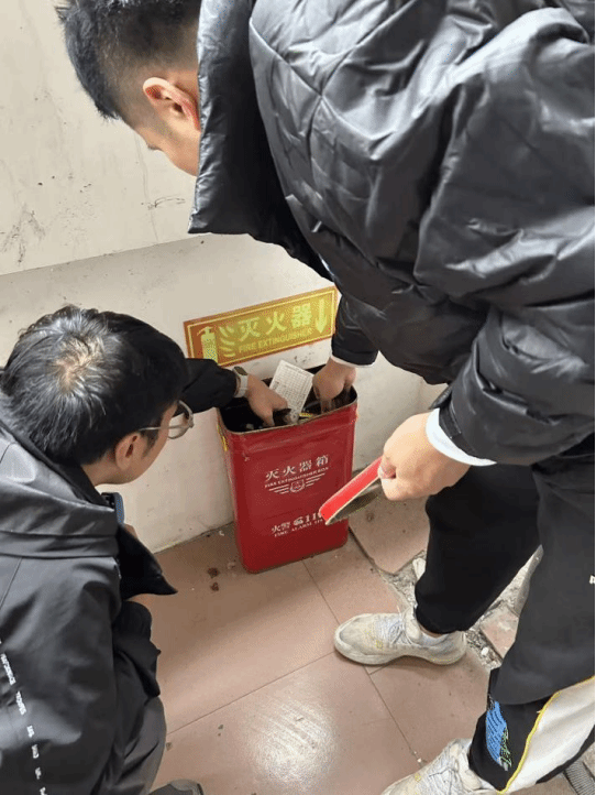 检查组重点围绕校区建筑安全、关键区域与薄弱环节展开细致检查。检查组逐一走遍2栋建筑的各个楼层,认真查看是否存在墙面脱落、楼板开裂情况;在教学区域,逐一对教室的电路设备、消防器材有效期、应急照明装置进行测试,确保教学设备运行安全与应急通道畅通;在学生宿舍,聚焦违规使用电器、私拉乱接电线、消防逃生路线堵塞等问题,现场提醒学生增强安全用电与防火意识。