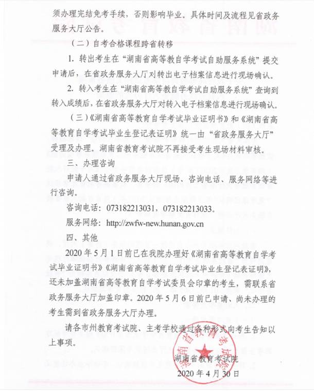 上一条:湖南省教育考试院关于2020年6月湖南省高等教育自学考试毕业申请的告知书 下一条:湖南省教育考试院关于我省高等教育自学考试相关服务事项入驻省政务服务大厅办理的通知