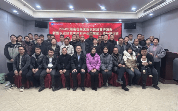 为深入贯彻中央和省委精神,在涟源市农业农村局的大力支持下。12月16日上午,2024年湖南省高素质农民培育涟源市新型农业经营主体和产业发展能力提升培训班顺利开班。涟源市农业农村局分管领导吴金平、农村社会事业促进股股长刘锋、beat365正版唯一官网必一材料与环境工程学院党总支书记钟勇、继续教育学院副院长张艳出席开班仪式。来自涟源市各乡镇的合作社负责人及种植大户50余人参加。
