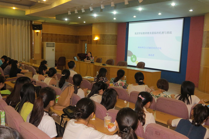 2015年6月18日上午8:30——10:30,湖南师范大学博士生导师杨莉君教授应邀前来beat365“人文科技大讲坛”,为教育科学系学前教育专业师生和校内外相关专业人士做学术讲座,主讲主题为“我国学前教师教育面临的机遇与挑战”。杨莉君教授结合我国学前教育事业发展的趋势和实际情况,系统讲解了当前及今后我国学前教育专业师资的专业任职资格及专业素养要求、当前学前教师教育存在的问题、面临的机遇与挑战。杨莉君教授的讲座高屋建瓴、联系实际、深入浅出,并详尽回答了部分师生的提问,受到与会听众的欢迎。